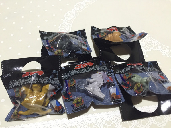 ゴジラ、メカゴジラ、ミニラ、モスラ、キングギドラの5種類。