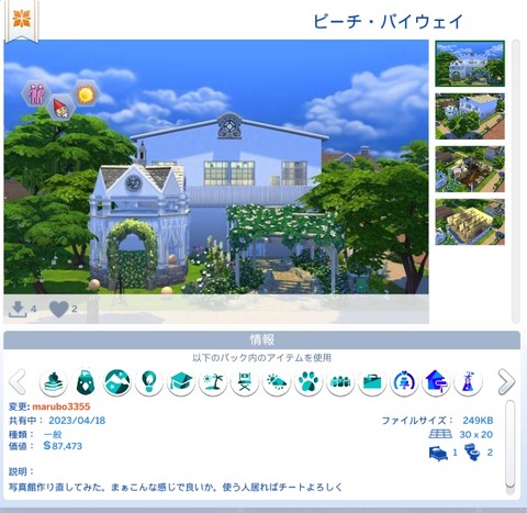 作者様はSNSやシムズも引退?お休み?中ですのでおそらくこの建築もギャラリーにはありません。