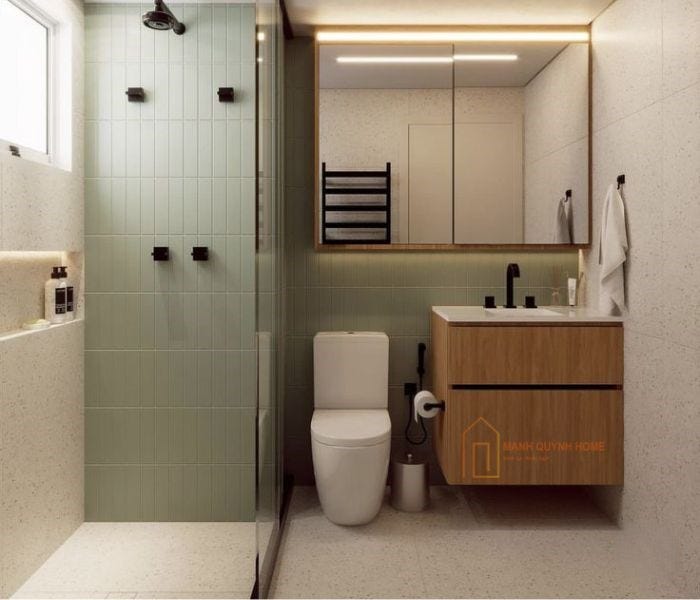 Gạch ốp tường tắm nhỏ không chỉ giúp tạo sự rộng rãi, sạch sẽ mà còn chống thấm, chống ẩm hiệu quả.