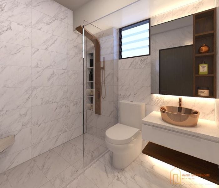Nếu phòng tắm rộng cho phép gia chủ thoải mái thể hiện cá tính qua thiết kế và lựa chọn gạch ốp. Thì với những không gian nhỏ, việc lựa chọn gạch ốp đòi hỏi sự tinh tế và cần cân nhắc kỹ lưỡng. Không chỉ đơn thuần là đẹp, gạch ốp tường phòng tắm nhỏ còn giúp “ăn gian” diện tích. Mang lại cảm giác thoáng đãng, sạch sẽ mà vẫn giữ được nét thẩm mỹ hiện đại, tiện nghi. Chính vì thế, nếu bạn đang tìm kiếm giải pháp ốp lát cho phòng tắm có diện tích hạn chế. Hãy lưu ý đến những yếu tố như màu sắc, kích thước gạch, họa tiết và cách phối màu tổng thể. Để tạo nên một không gian hài hòa, thoải mái và đầy cảm hứng mỗi ngày.