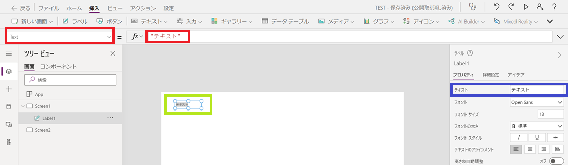 ②Textプロパティとなっていることを確認する。なってなければプルダウンで変更する