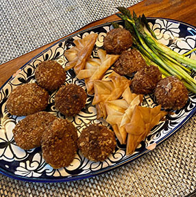 ザジキ:きゅうり&ヨーグルトソースも作り、他ドレッシングも並べ