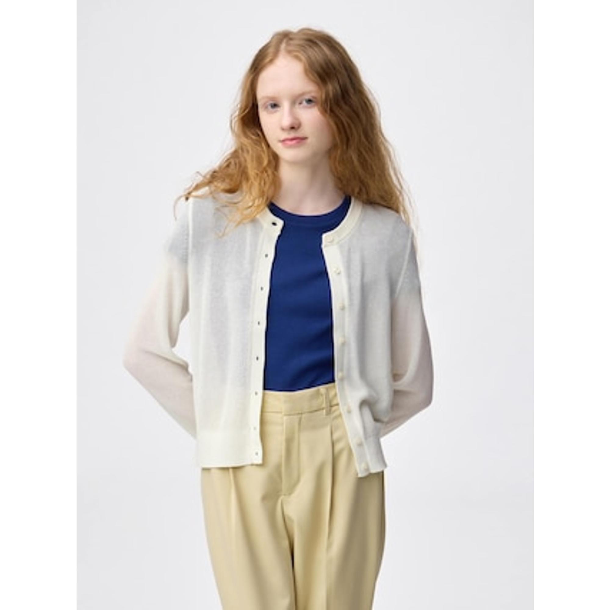 先日は色違いのブラウンを載せたシアーカーディガン。