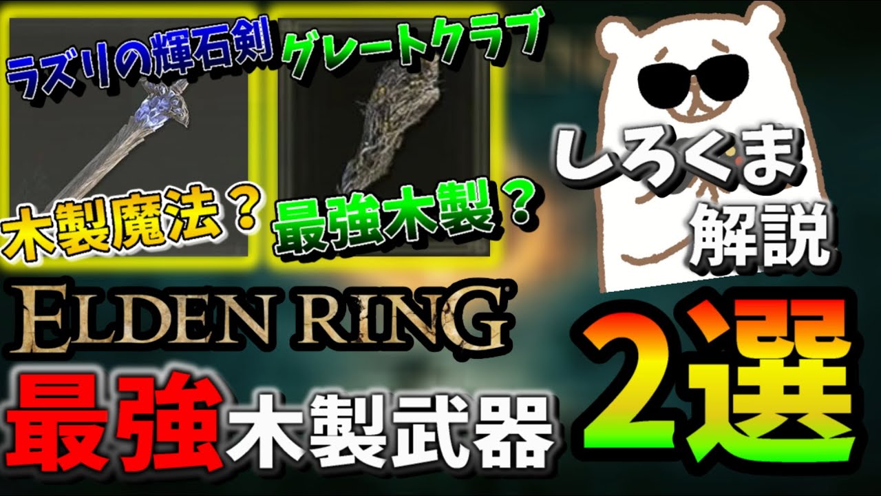 【エルデンリング】全プレイヤーが見落としてる最強の木製武器2選!今見たね😏本日の動画はしろくまならではの動画となっております!!!しろくまは木製武器縛りでエルデンをプレイしてるので木製界の最強武器がわかります🤣そして使っていくうちにあれ?・・・全ての武器と比較しても最強なんじゃね!?っと言う事に気がつきました!!!ではエルデンの世界へ行ってらっしゃい!!!--------...youtu.be