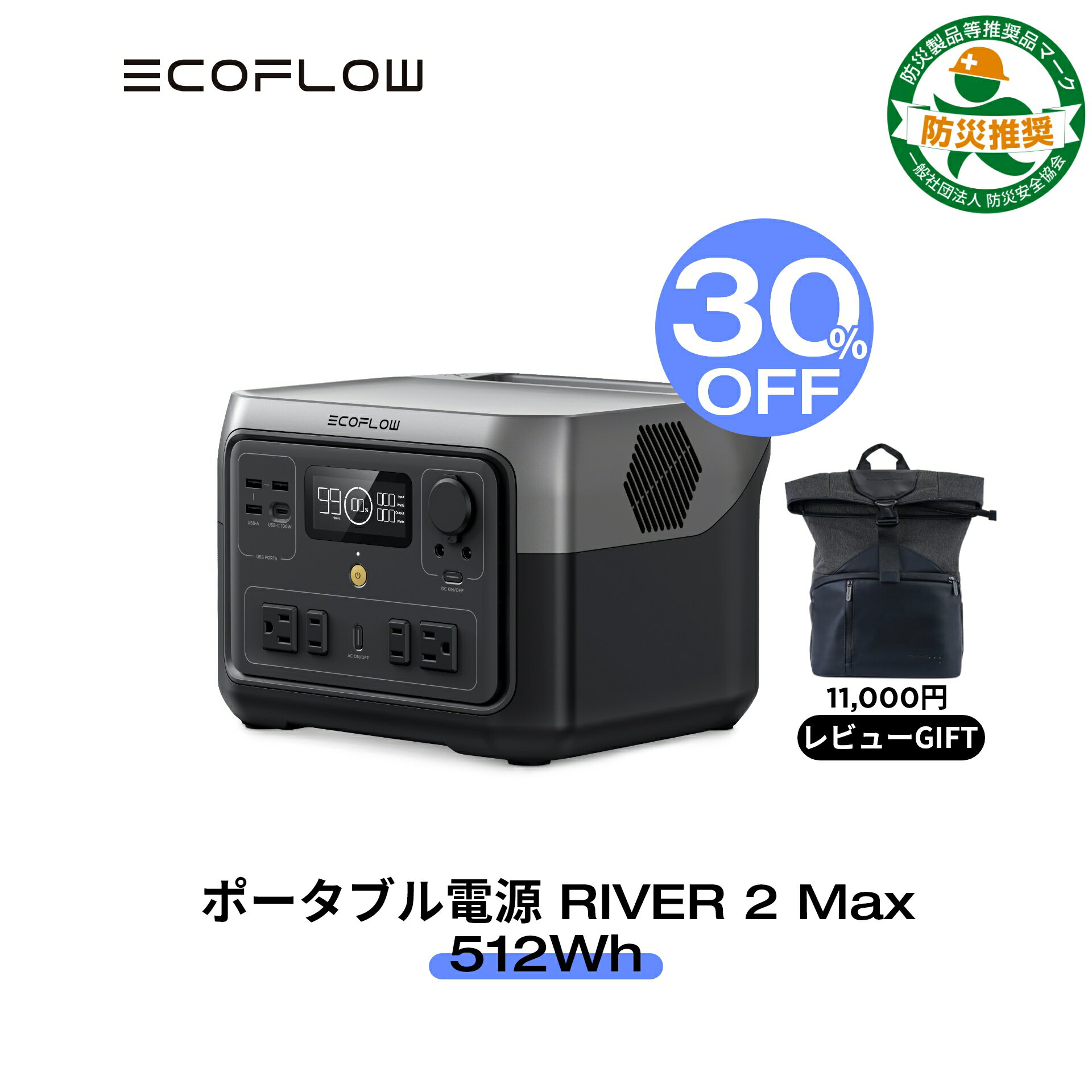 【30%OFFクーポンで45,430円!1/24 20時~】EcoFlow ポータブル電源 リン酸鉄 長寿命 1hフル充電 大容量 RIVER 2 Max 512Wh 5年保証 小型 蓄電池 発電機 ポータブルバッテリー 急速充電 車中泊 AC出力500W アウトドア キャンプ 停電対策 防災グッズ エコフロー楽天市場${EVENT_LABEL_01_TEXT}