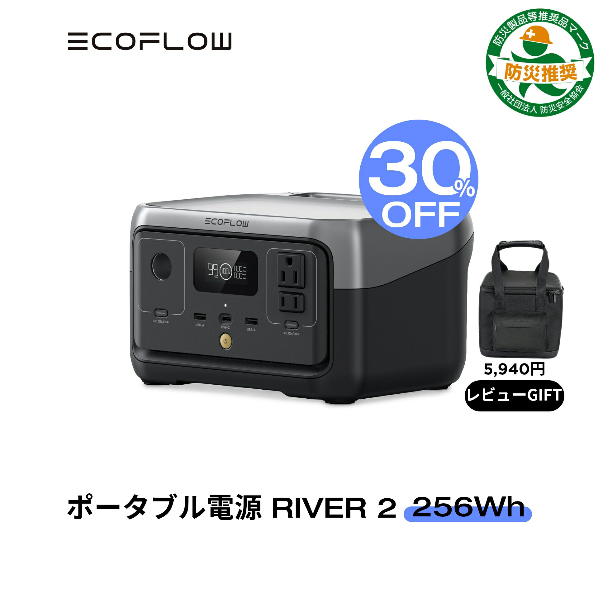 【30%OFFクーポンで20,930円!1/24 20時~】EcoFlow ポータブル電源 リン酸鉄 長寿命 1hフル充電 RIVER 2 256Wh 5年保証 小型 蓄電池 発電機 ポータブル バッテリー 急速充電 アプリ対応 車中泊 AC出力300W(サージ600W) アウトドア 台風 停電対策 防災グッズ キャンプ楽天市場${EVENT_LABEL_01_TEXT}