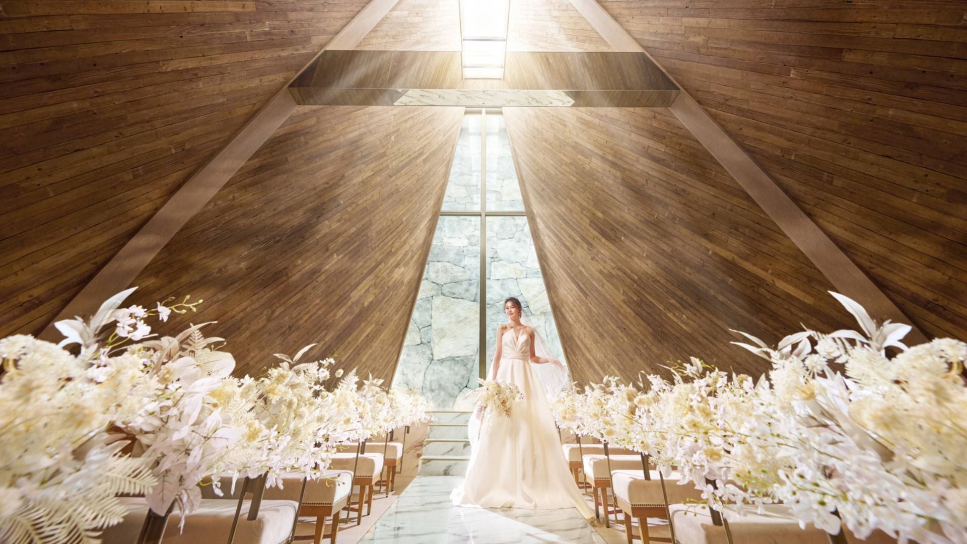 チャペルの奥に滝?お水が流れていて