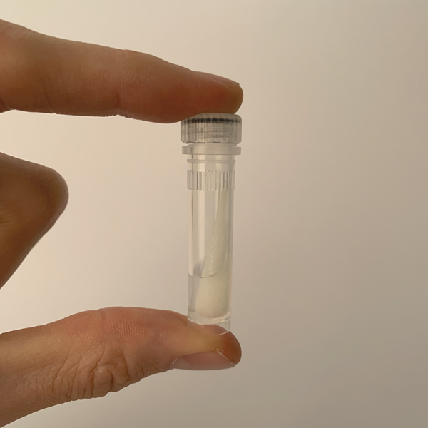 スワブの先端、保存液の入った容器にしっかりとフタをし、数回降ります。