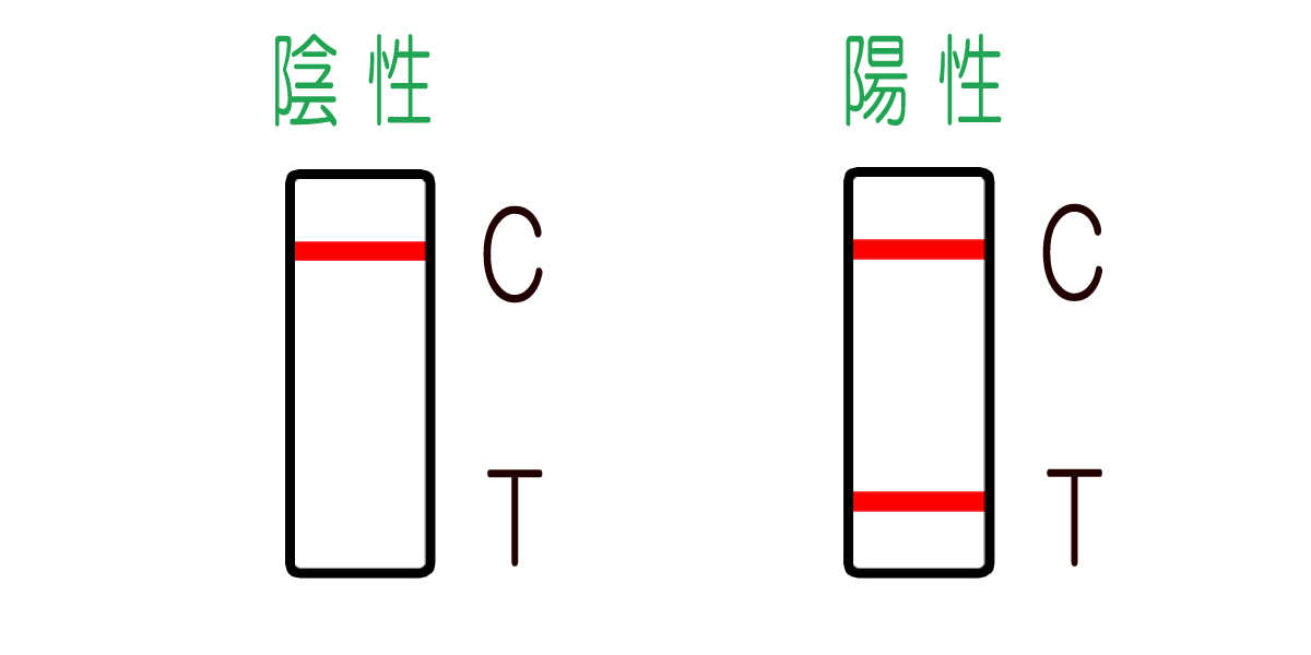 バナー画像の通り、C部分にのみ赤線が出れば陰性、C・T部分に赤線が出れば陽性となります。