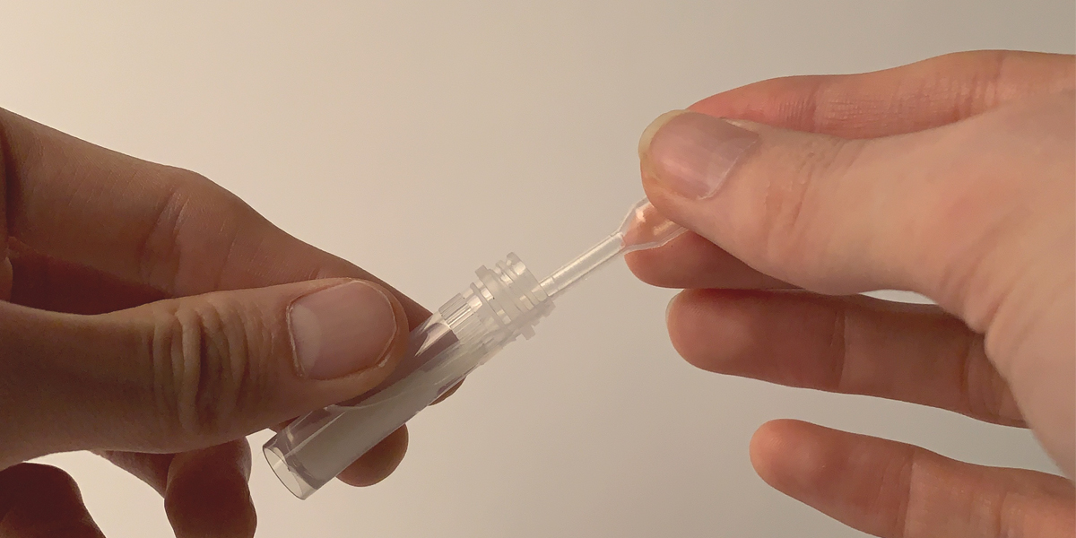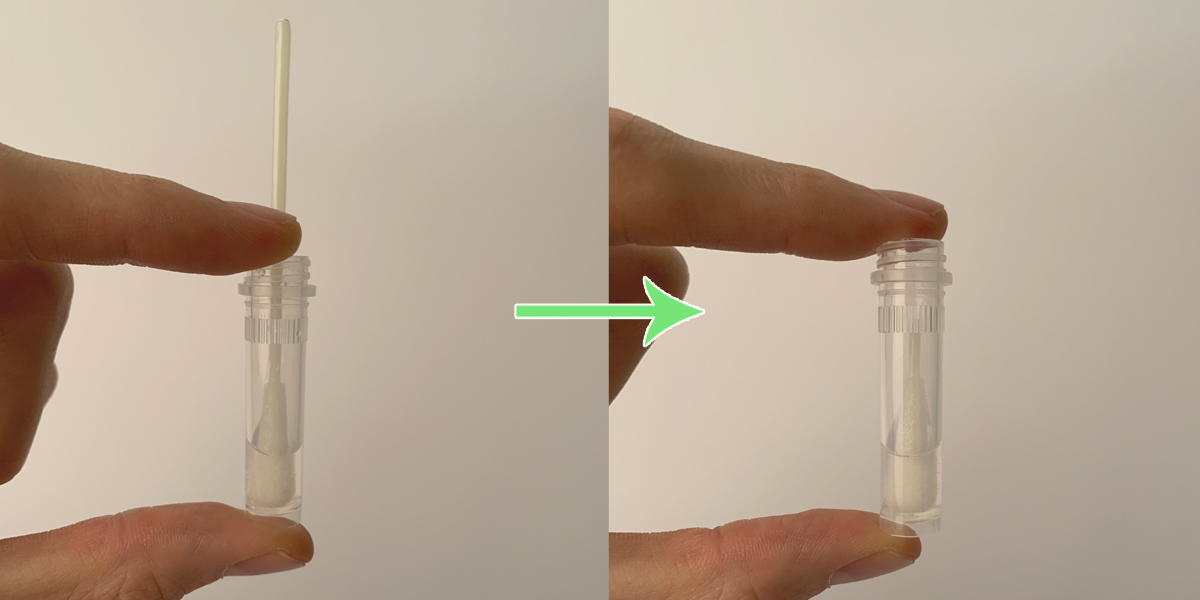 (バナー画像は、スワブの先端を折る前と、折った後)