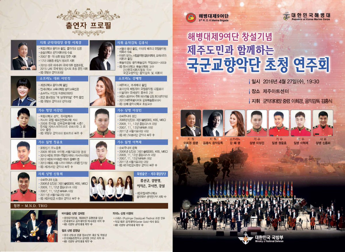 兵役中(シンドン ユノ ソンミン ウニョク)2016.4.27 「韓国軍交響楽団」招待演奏会【済州島民とともにする、国軍交響団招請演奏会】 日時:2016年4月27日(水)19:30 場所:済州アートセンター海兵隊第9旅団創設記念国軍交響楽団済州道民と一緒にするコンサート