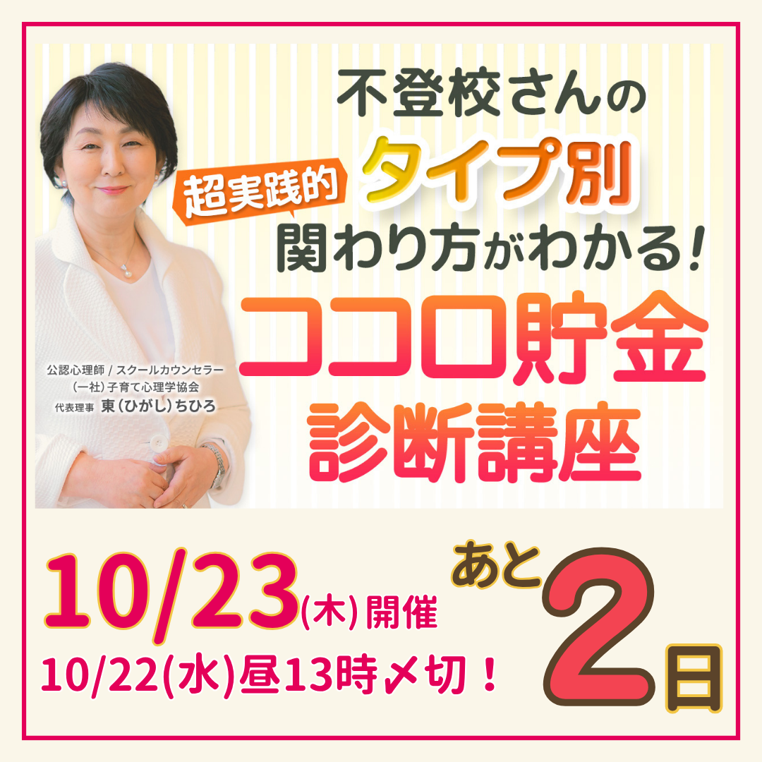 ■「不登校さんのタイプ別 超実践的関わり方がわかる!ココロ貯金診断講座」
