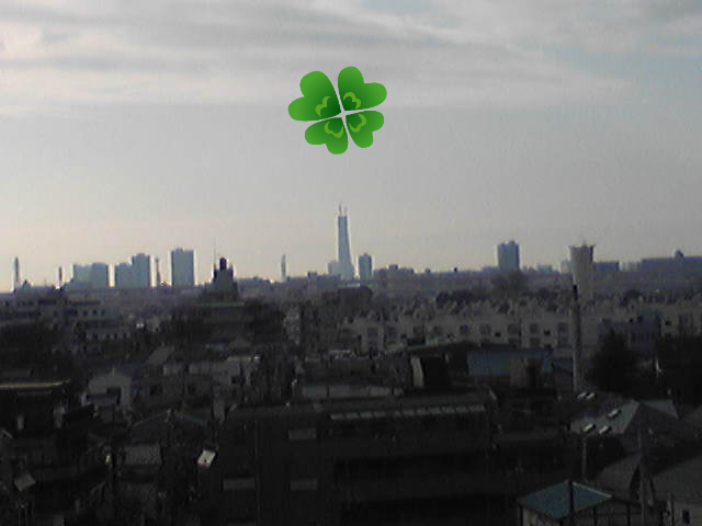 3月8日のスカイツリーきゅうり子です。今朝撮影した建設中のスカイツリーです。四葉のクローバーの下。ちょっと遠いね。携帯だと限界があるね。この間のデジカメ、調子悪くて返品したからね。しょうがないね。また載せるね。お風呂が沸いたから入るね。