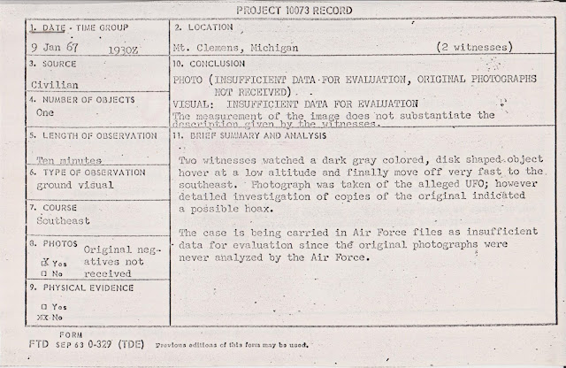 Two weeks later, the CIA’s National Photographic Interpretation Center was finally completed. Dated February 17, 1967, “Photo Analysis of UFO Photography," the 2.5-page written portion stated, “This office cannot shed any light on the authenticity of this alleged UFO from this photo analysis.” Several problematic elements were mentioned, including, “the fact that the tail-section of the UFO was photographed in each case with the same cross-section exposed casts some suspicion on the authenticity of the UFO.” Without having the original prints to examine, all they would say was, “inconclusive.”