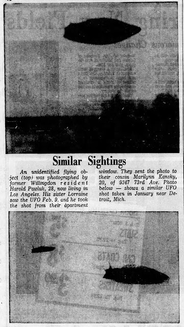 Harold Pawluk of Los Angeles took a photo of a UFO that closely resembled the Jaroslaw UFO. The picture appeared in some California newspapers and in his old home in Canada.