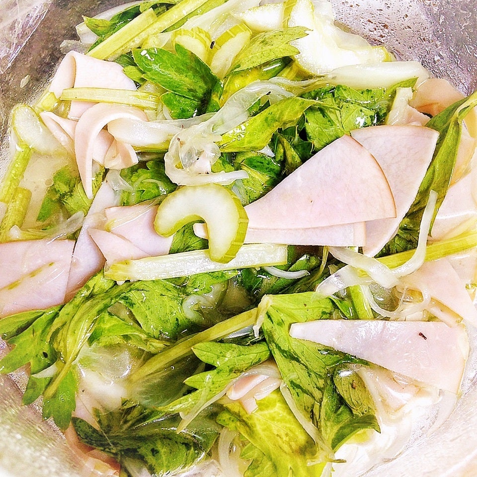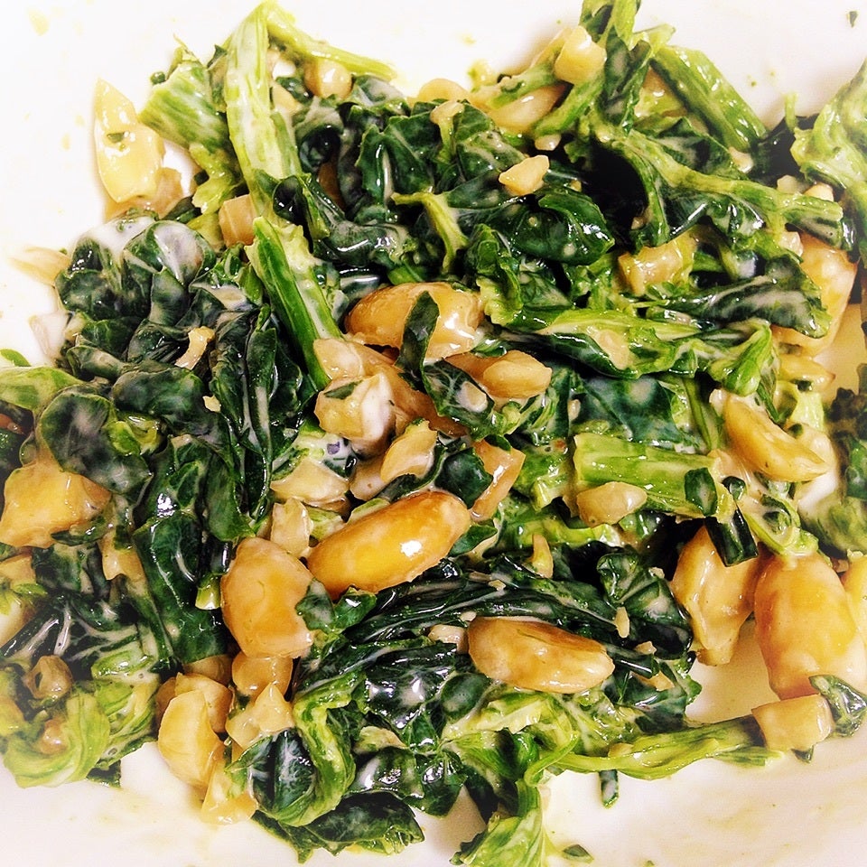ピーナッツクリーム、マヨネーズ、醤油で味付けしたら、おつまみコーナーの安いピーナッツを粉々にしたのをパラパラと