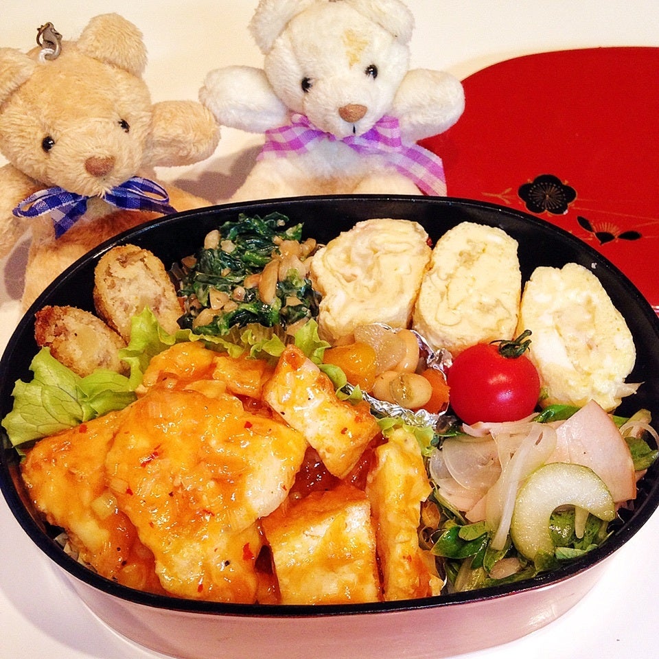 あとは私の好物!!ふじっこ〜のおまぁ〜めさんっ♪の野菜豆を入れてあげました( ・`ω・´)キリッ