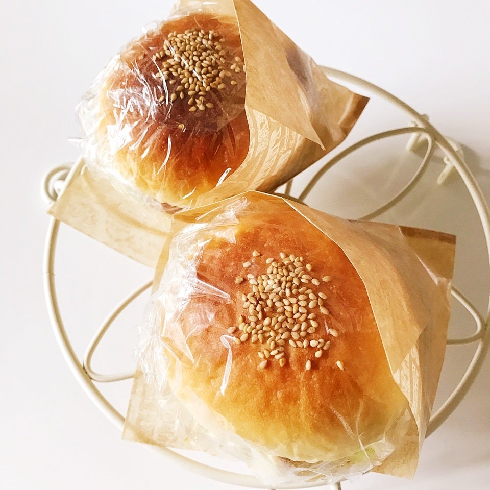 お豆腐バーグ→チーズ→マヨネーズ→パン