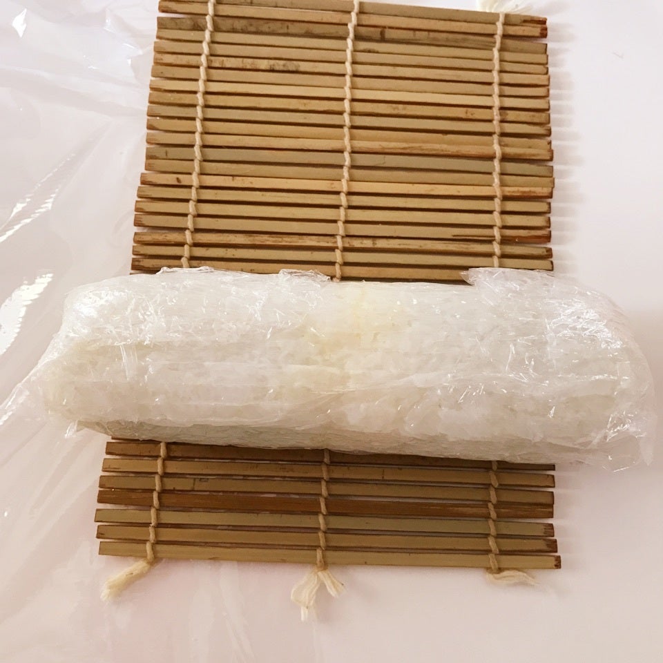 ラップでだいたい形を作ったら、巻き簾でキツめに形を整える