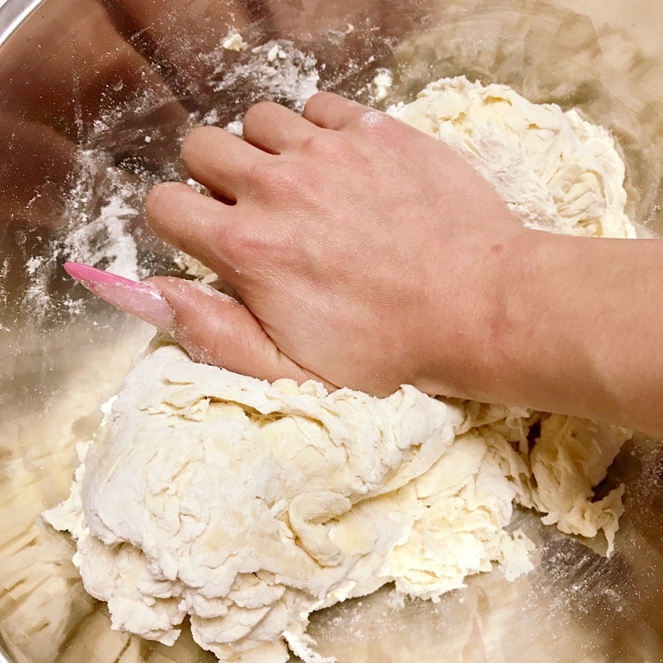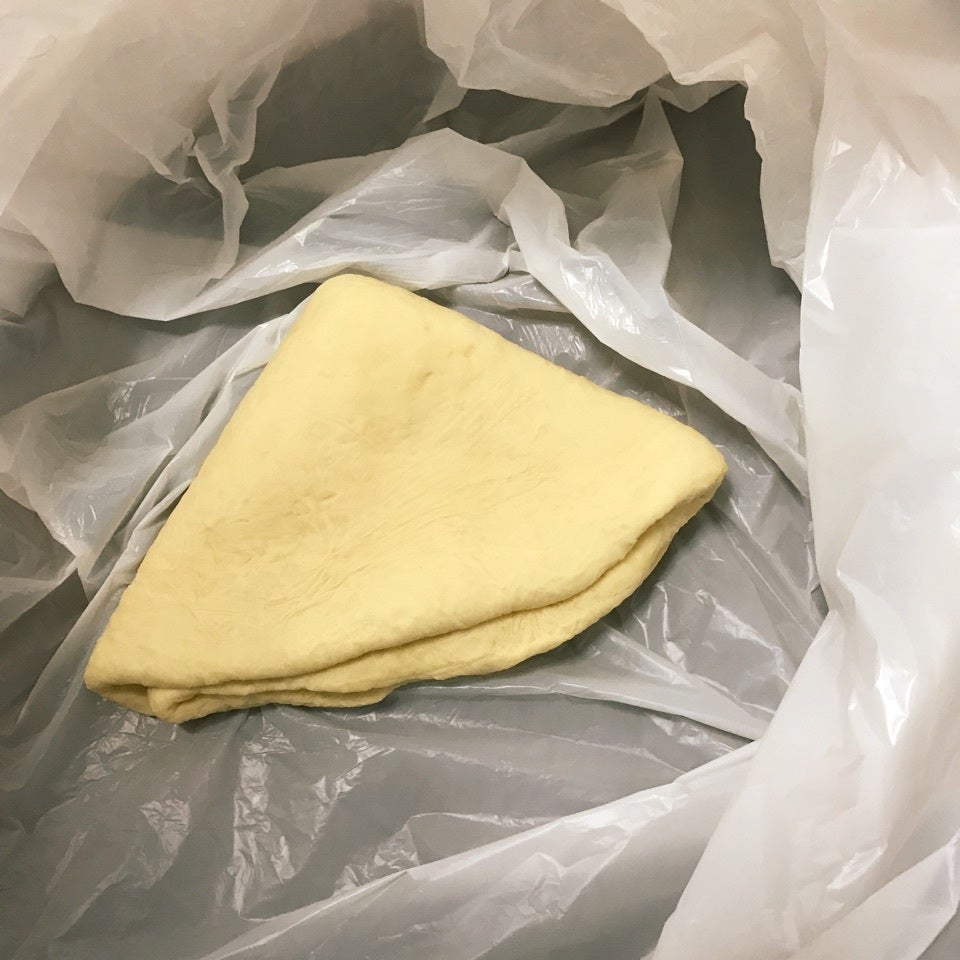 丸めてボウルに入れてラップをかけて常温で3〜4時間寝かせます。