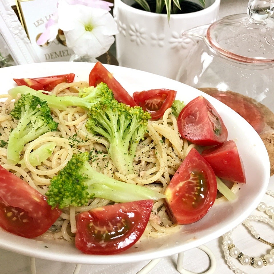 トマトとブロッコリーもいれて食べるまで冷蔵庫待機ヽ(*´∀`*)ノ.+゚