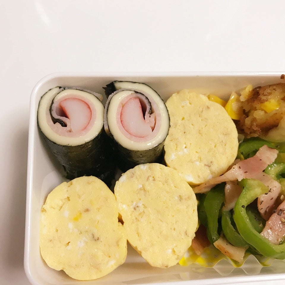 本日のお弁当は冷蔵庫と冷蔵庫の残り物をかき集めて作りましたヽ(*´∀`*)ノ.+゚