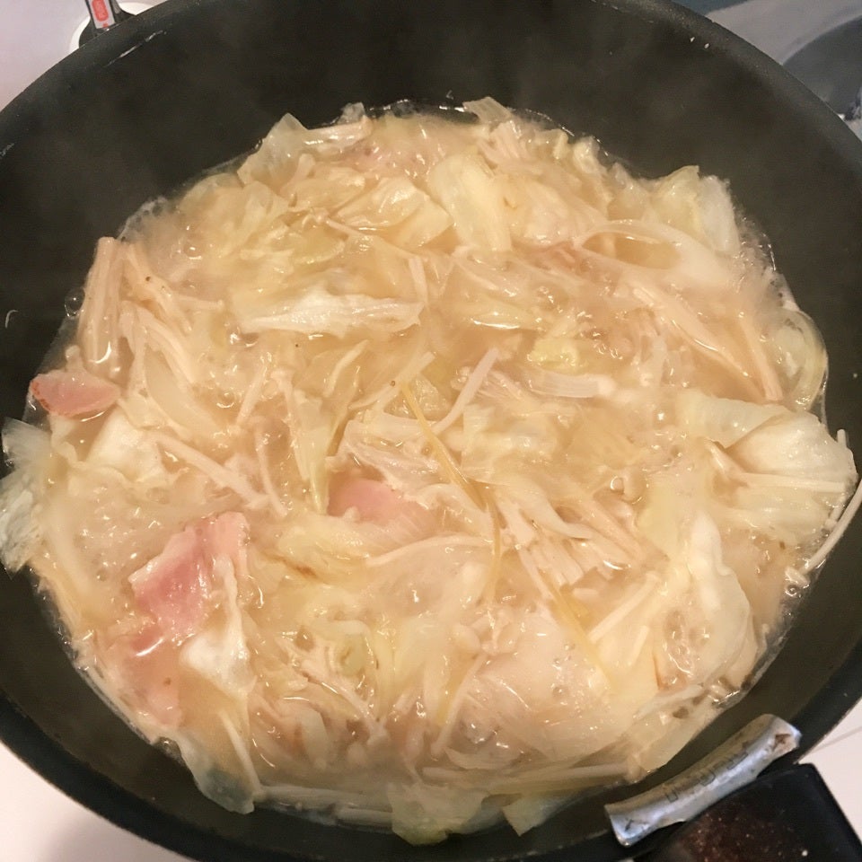 茹で時間3分前くらいに味付け〜