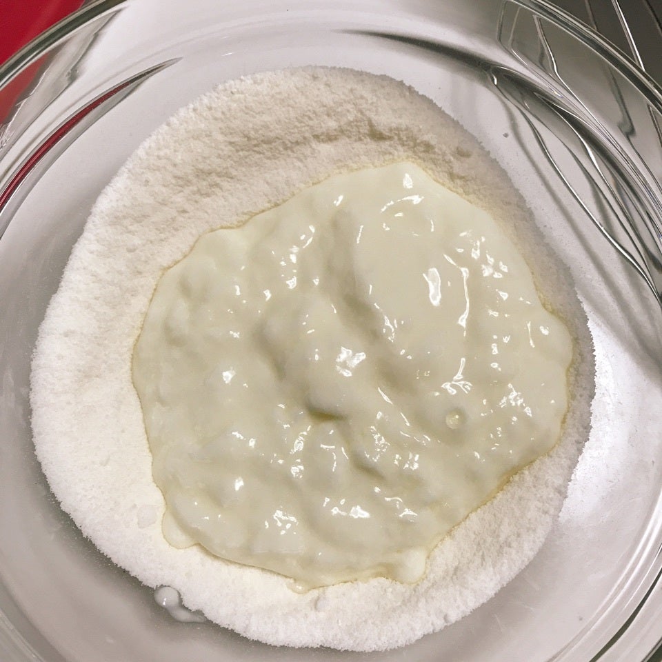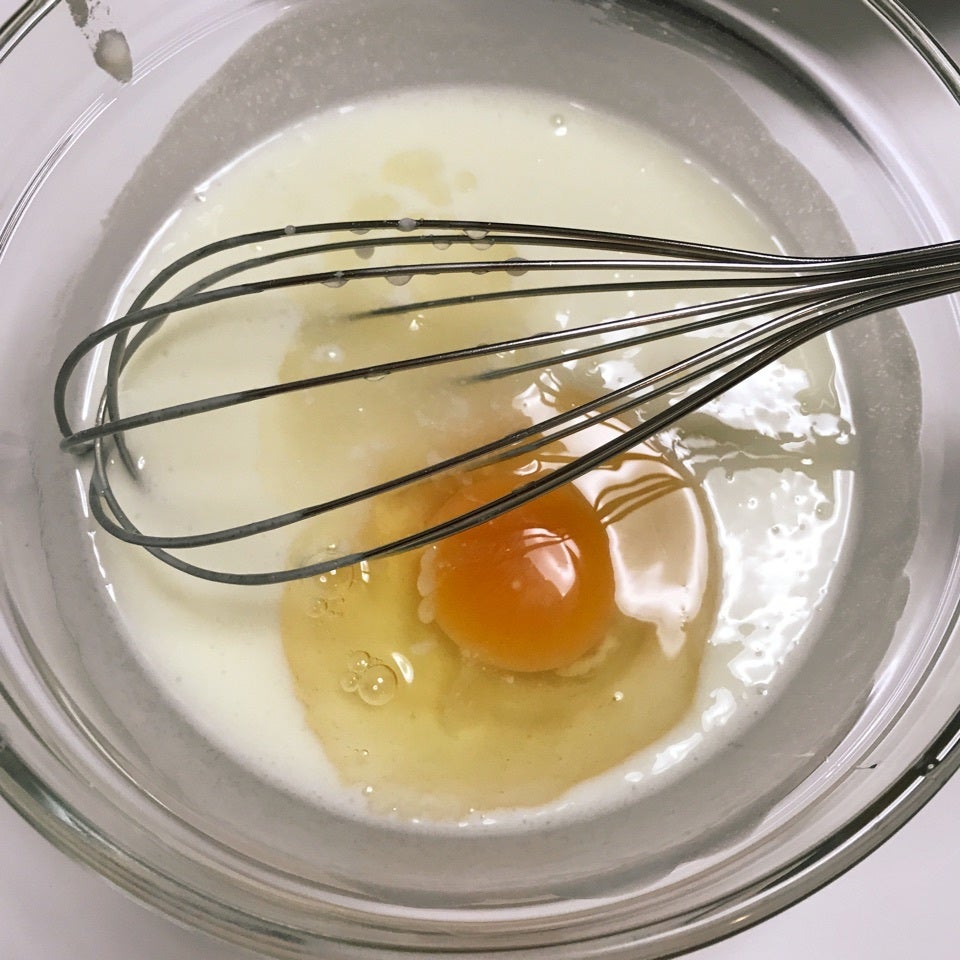 そこに、プレーンヨーグルト、卵をその都度混ぜながら入れていきます♪