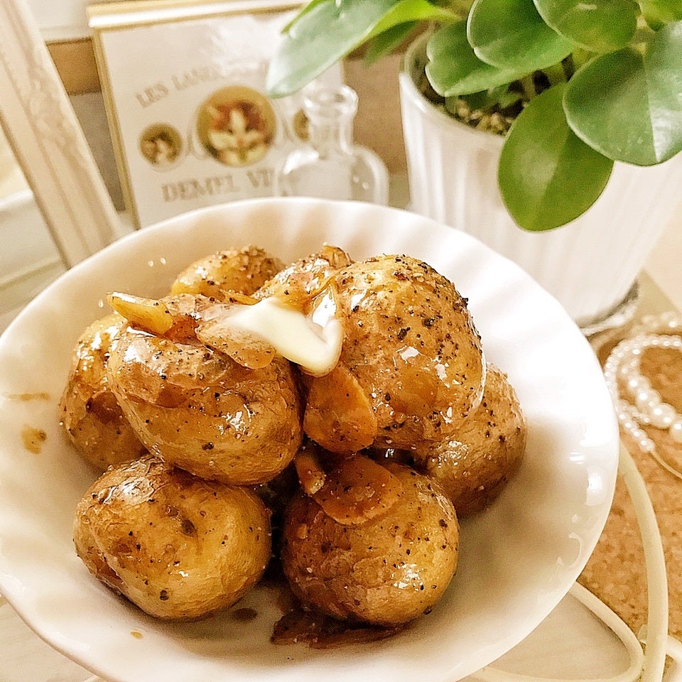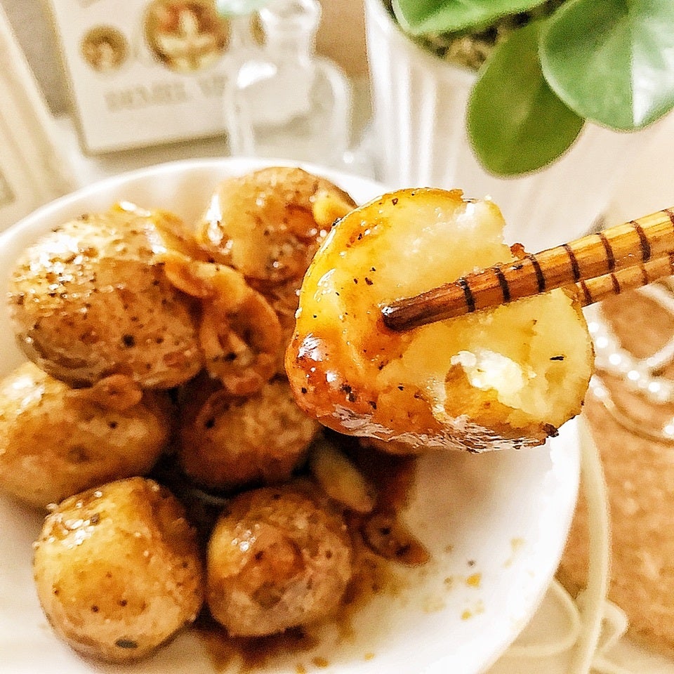 小さいじゃがいもを皮のまま多めの油でコロコロ揚げ焼き!