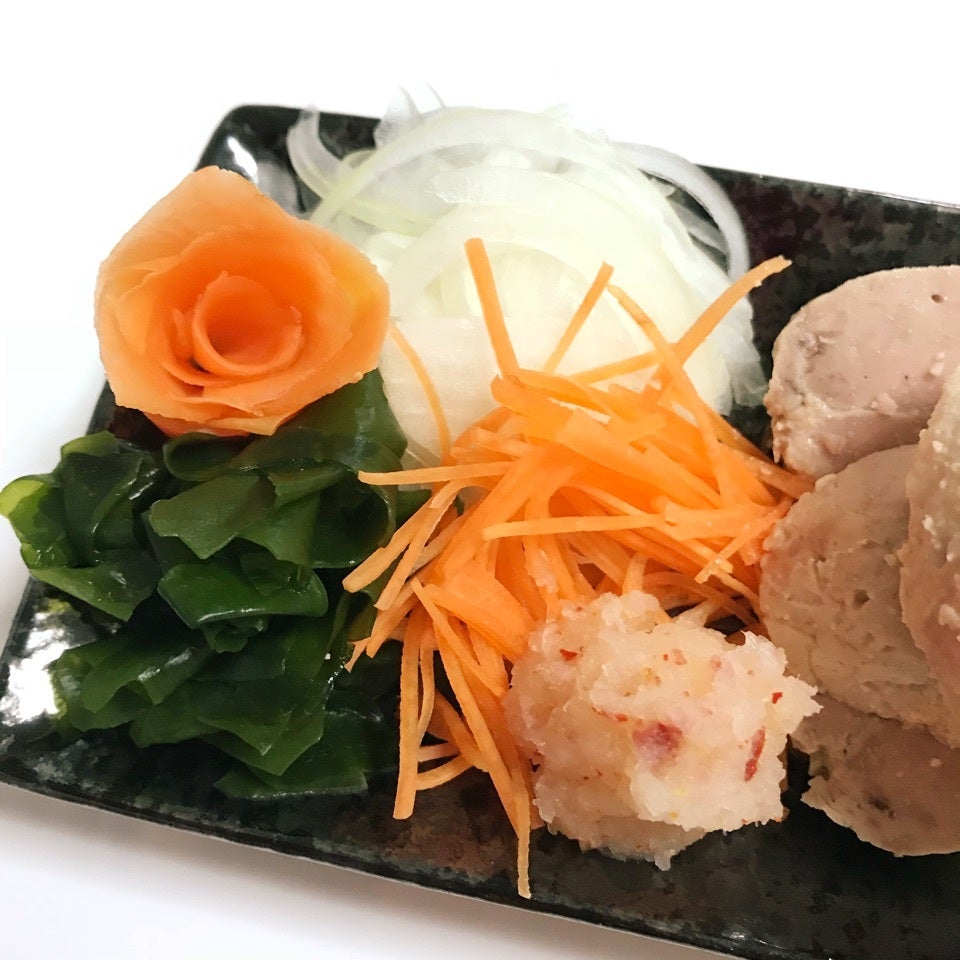 小葱がなかったのでスライスオニオン、わかめ、人参を