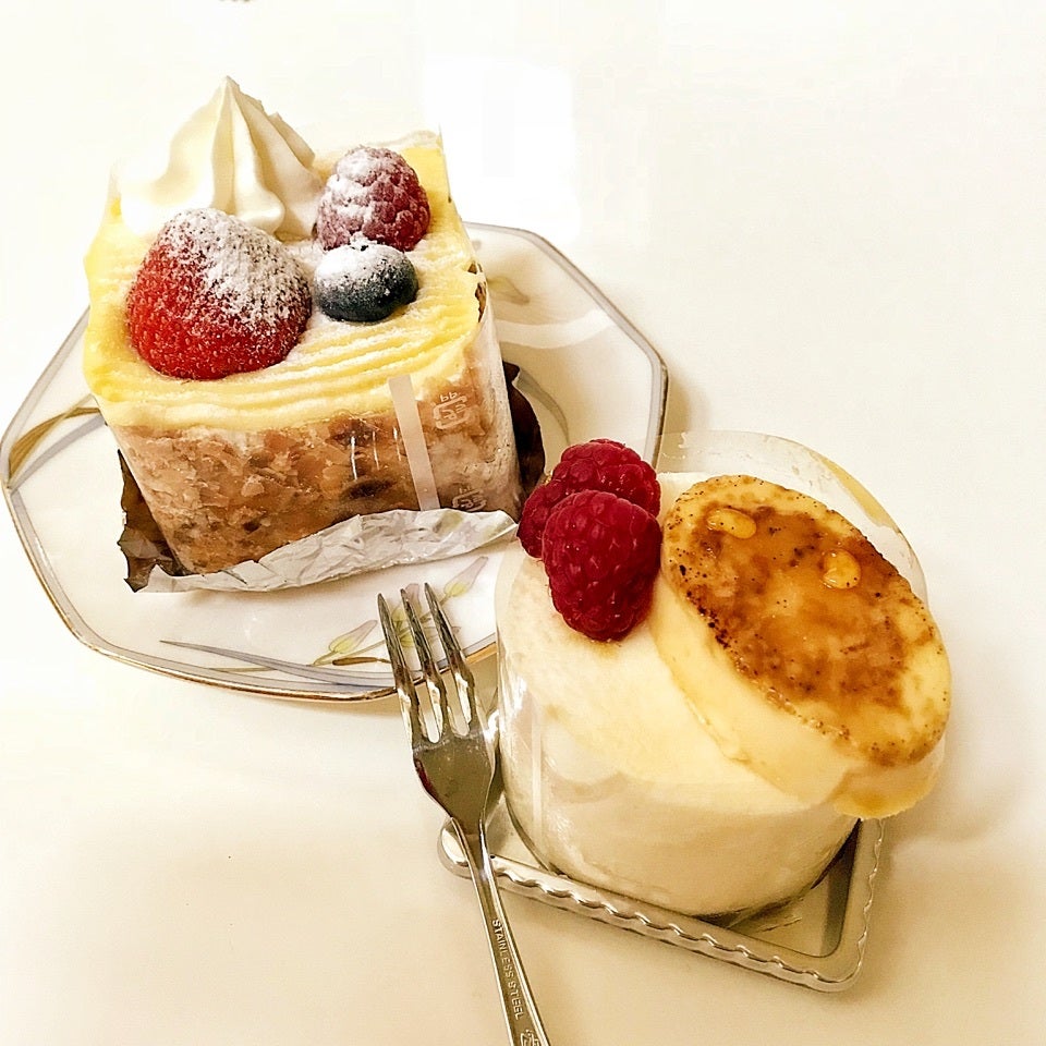 桃やらバナナやら果物たっぷりなプリン乗りチーズケーキ