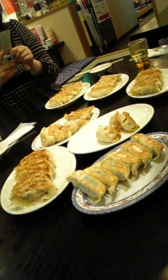 餃子屋さんでみんなで写メ撮る姿は一見、県外の人のようですが
