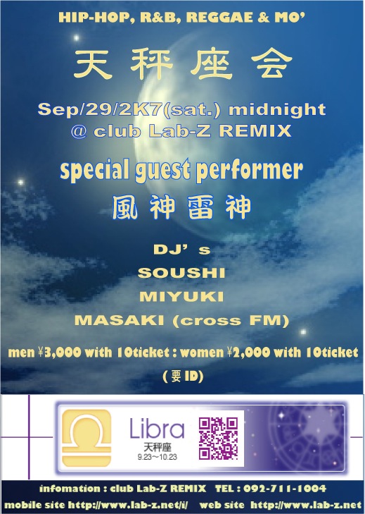 天秤座会!!!!決定しました!!!☆*゚ ゜゚*☆*☆*゚9.29(Sat)☆*゚ ゜゚*☆*☆*゚天秤座の方はもちろん入場無料要IDです。皆様のご来店お待ちしてます(´∀`*)因みにゲストはアノやばぁぁぁぁい2人組み!!!!□■□■□■□■□『風神雷神!!!』□■□■□■□■□です。9月の最終土曜!!!!!Labで騒ぎましょ~(゚∀゚)アヒャヒャNelly ft Jaheim - My Place