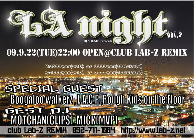 LA Night!!!!!!!!!!!本日きたぁぁぁぁぁぁぁ連休ファイナルイベントは皆様ご存じLA Night!!!!!!!!!!!LA行きたい病の方(私っ!?)LA行ってみたい方LA行く方LA好きな方I LUV ウェッサァァァイッの方さぁぁぁぁぁぁガッツリLAモードでいざ出陣!!!!って事で本日も皆様のご来店お待ちしております。
