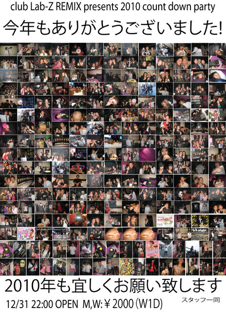 Lab-Zカウントダウンはいっ!!!!! 2009→2010 そぅです カウントダウンパーティー!!!!!! まだご挨拶はしませんが… 告知だけ!!!! 12月31日(THU)OPEN22:00~ そして今年もアレやっちゃいます!!!! Lab-Zカウントダウンと言えば!!!!! 名物 樽酒!!祝いの振る舞い酒!! やりまっせぇぇぇぇぇ!!!!! もぉ~覚悟っす!!(スタッフの声) って事で今年最後のドンチャン騒ぎ 踊り収め 踊り始めはLab-Zで!!!!!!