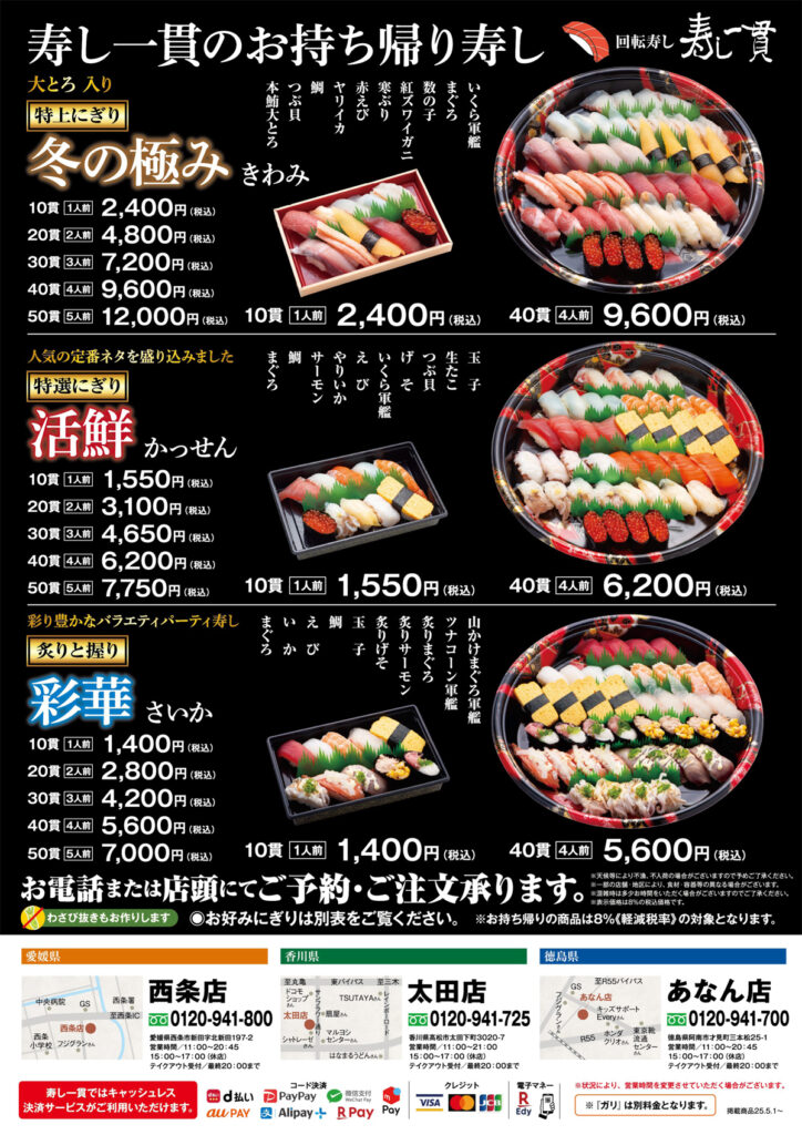 今回は「冬の極み」をオーダーしましたが、苦手なネタは別のネタに変更可能。