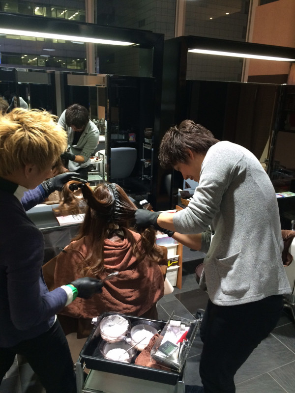 今日は、カラー剤を三つに分けて塗り分けをして塗布します。