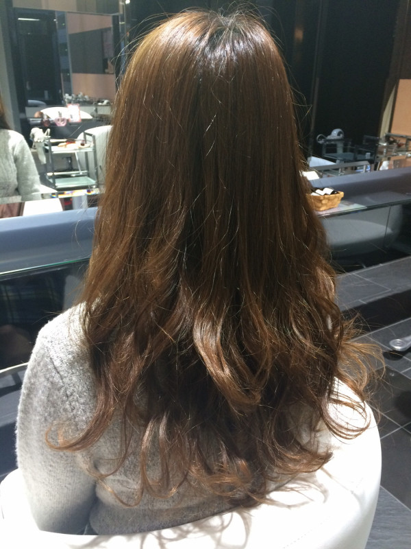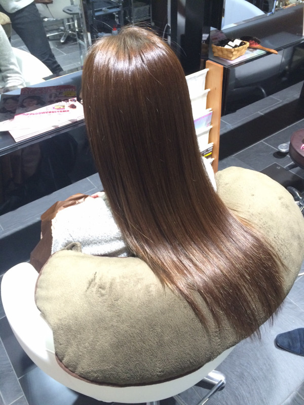 ラブレスカラーとAujuaトリートメントでツヤツヤ美髪です。