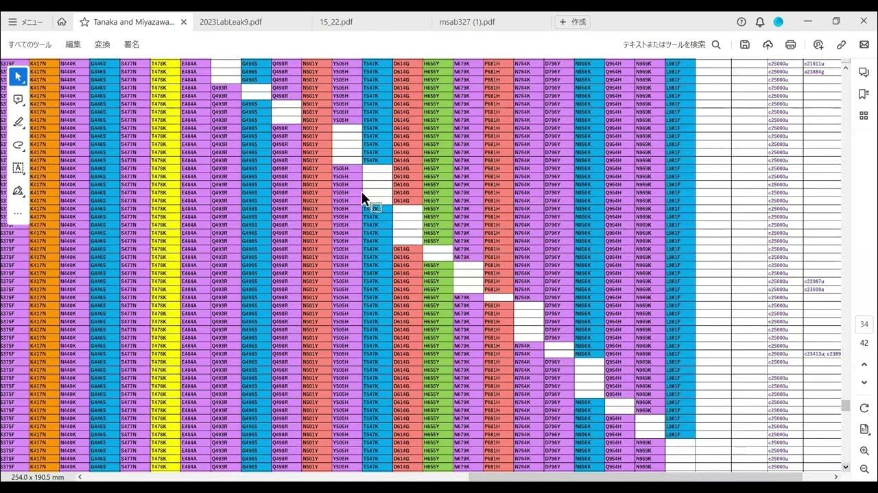 (一番上の第一行はいわゆる武漢株)