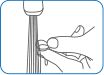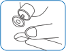 ①レンズの凹面が親指側になるように人さし指、中指、親指でレンズを持ちます。レンズ表面に適量をたらし、指の腹で軽くこするようにして(約15秒)レンズの両面を洗浄します。