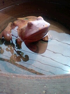 大丈夫でした~???それはそれはスゴイ台風でしたねみなさん☆大丈夫でしたか~???かなりの風と・かなりの雨ちょうど通勤時間に重なってしまいましたが無事に会社に到着できましたでしょうか心配はたくさんですが、ひとつ微笑ましいことが…ベランダにいるこのカエルくんいつもはお水を入れていないのですが今日はこんなに溜まっていましたこころなしか、ちょっとうれしそうでしたよ~クスッと笑ってしまった1日の始まりでした☆