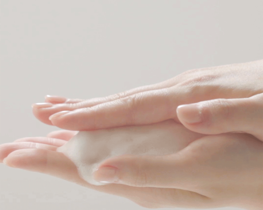 泡を軽くなじませながら、顔全体にやさしく広げます