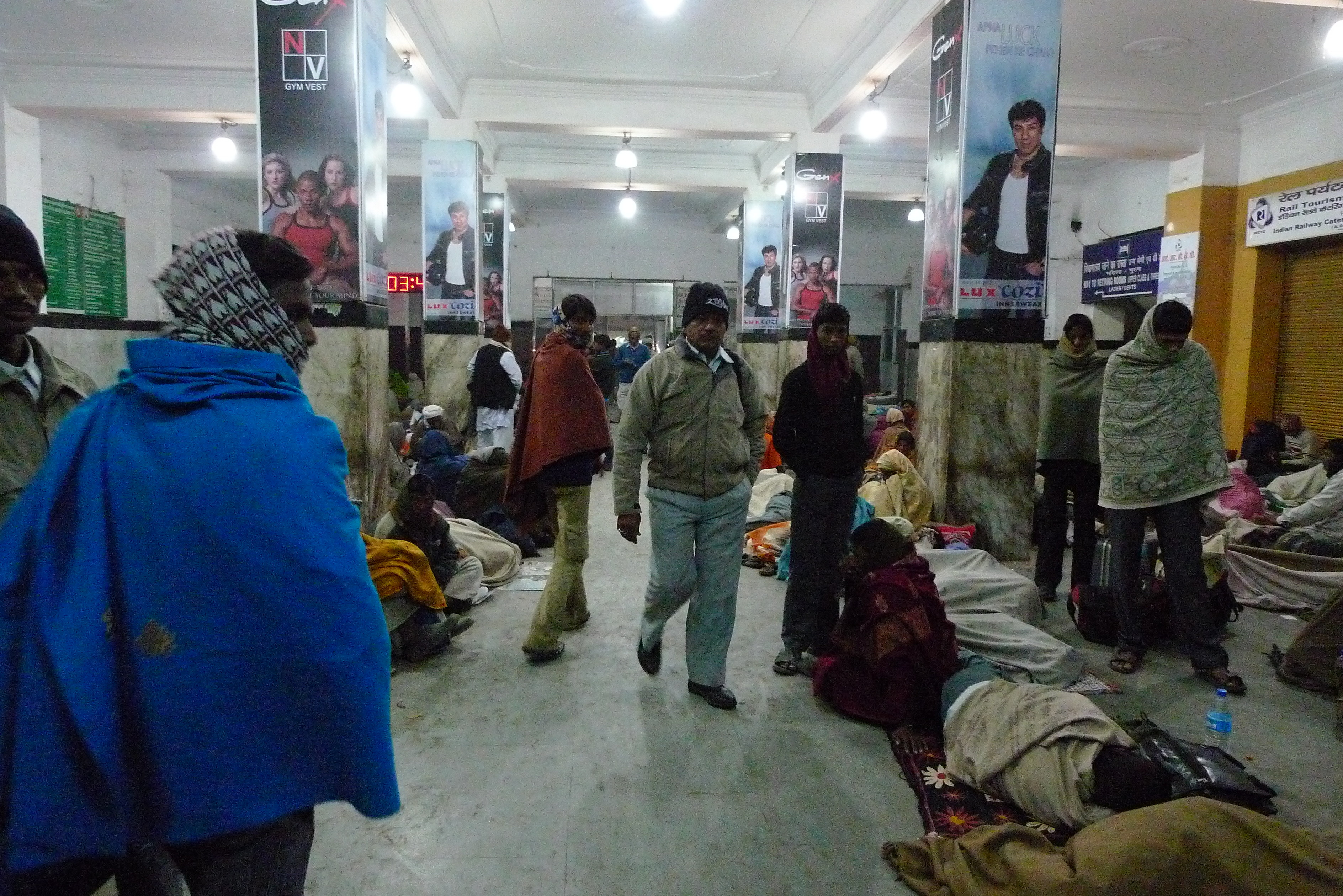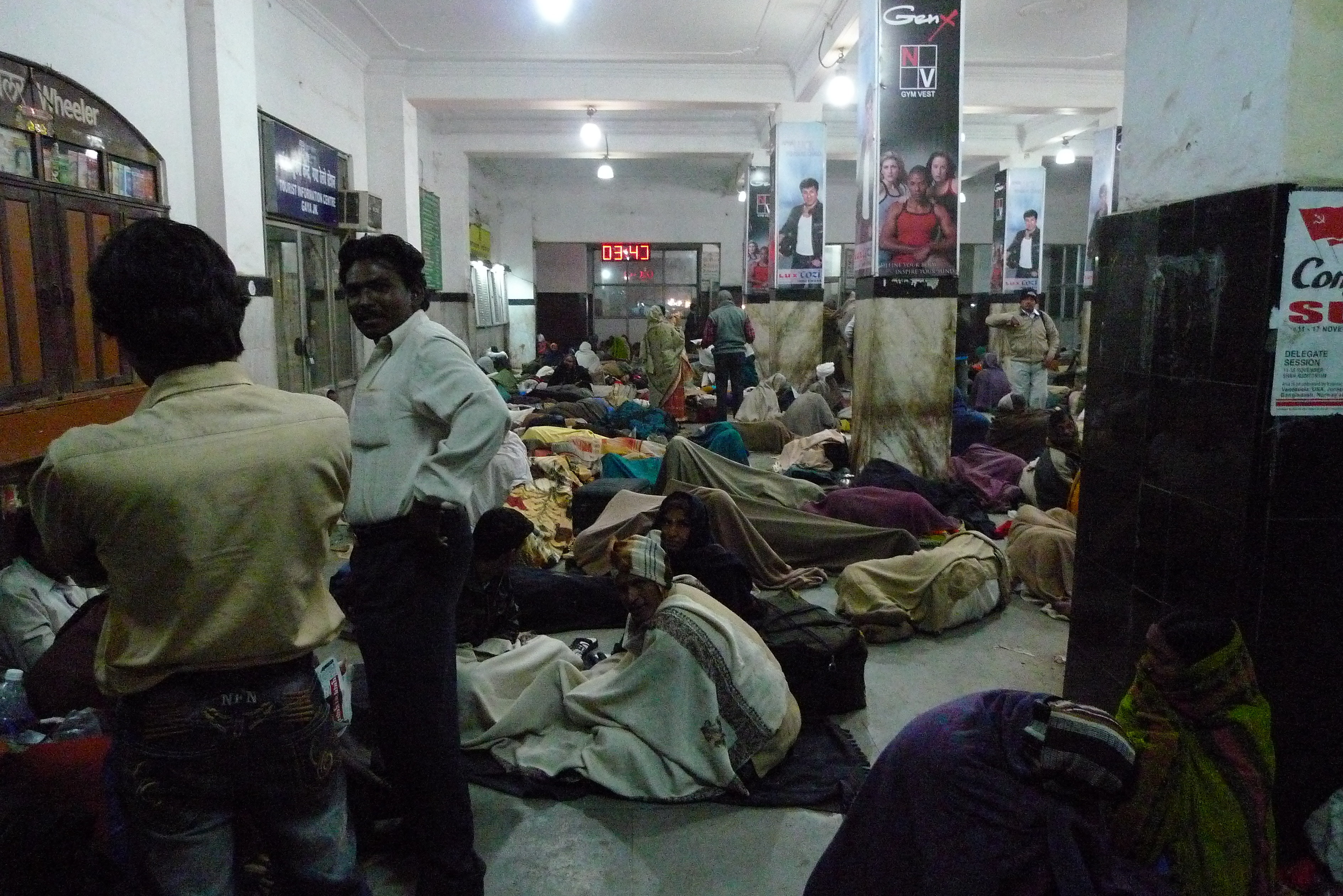 ホームまでの道のりで、驚いたのが駅の構内に多くの人がビッチリ肩を寄せ合って寝てます