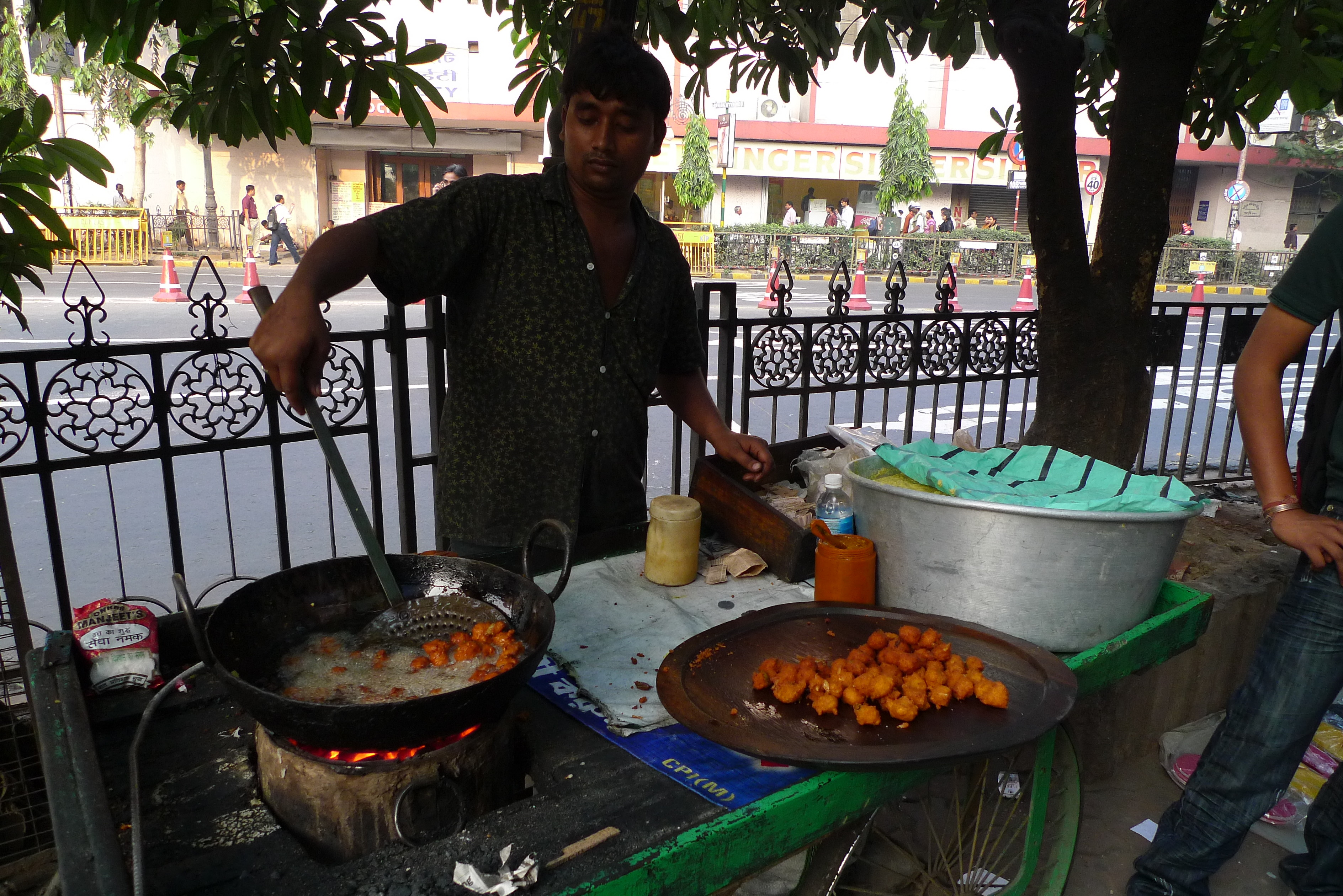 屋台で、揚げたてから揚げ~5Rs(10円)
