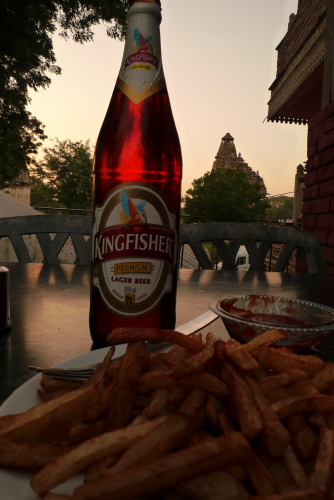 Raja's cafe ビール2本とポテト 275Rs(約550円)
