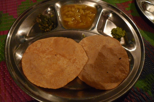 (プーリーとは、ナンを薄くのばして~油で揚げたもの)