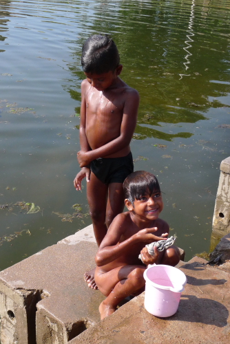 体を洗う人、洗濯する人、バイク洗う人・・・同じ川で用を足してます