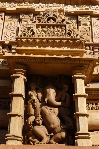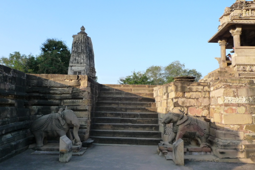 8、ヴィシュワナータ寺院 : シヴァ神を祀る。五堂形式をとるが現在は祀堂の二つが失われている。壁面の彫刻には恋に焦がれる女性が多いことで知られている。1002年建立。