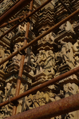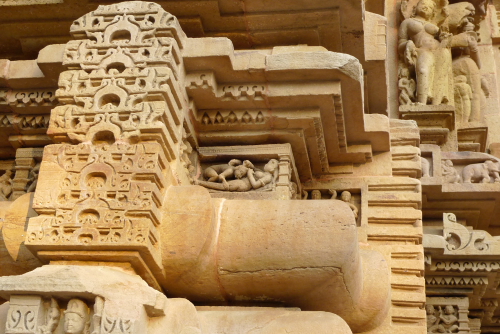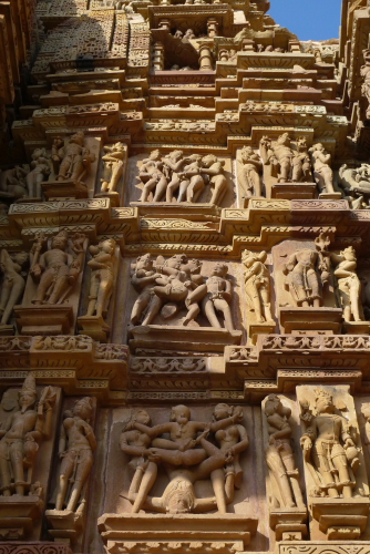 聖なる寺院の周囲を取り巻く、エロティックな男女の彫刻群。