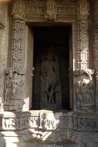 前廊、玄関、前殿、本殿と徐々に高さを増す各々の高等(市から)が山の尾根のように連なる姿が印象的。チャンデーラ朝最盛期の美の水準の高さを伝える、北インドを代表する寺院。